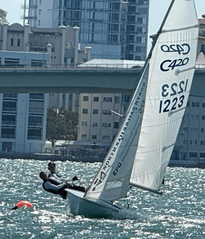 Basic sail trim, body positioning and navigate a racecourse